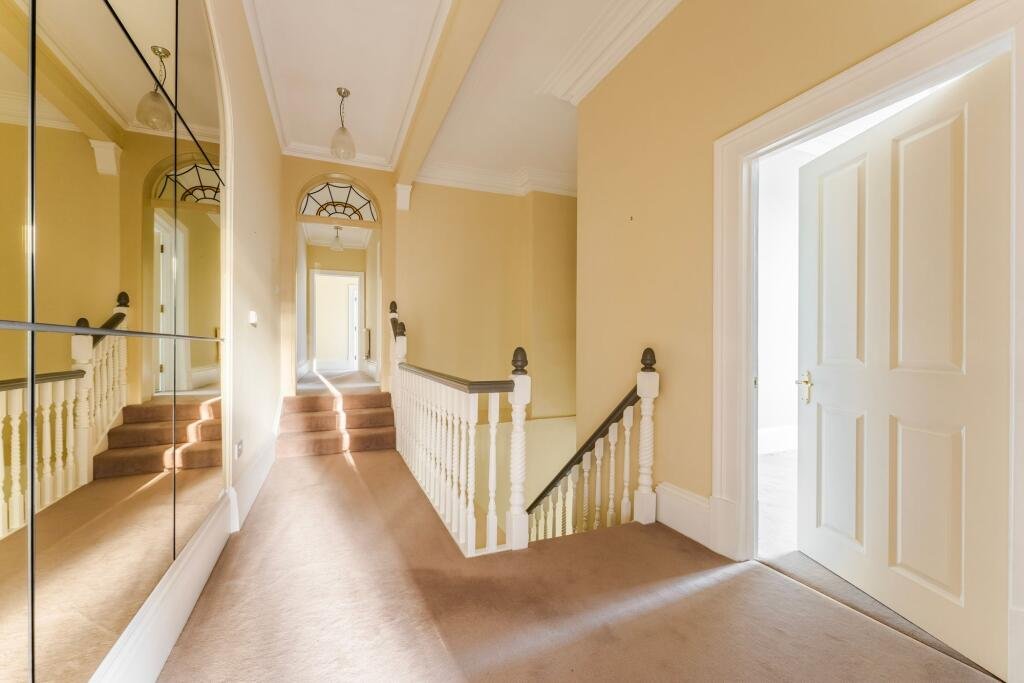 The home is approached through a welcoming entrance hall that sets the tone with its sense of space and character. The standout feature of the ground floor is the former ballroom, now an extraordinary sitting room measuring over 27 feet in length. High ceilings, sash windows and an original feature fireplace create a striking setting, with French doors opening to the side garden to bring in natural light.