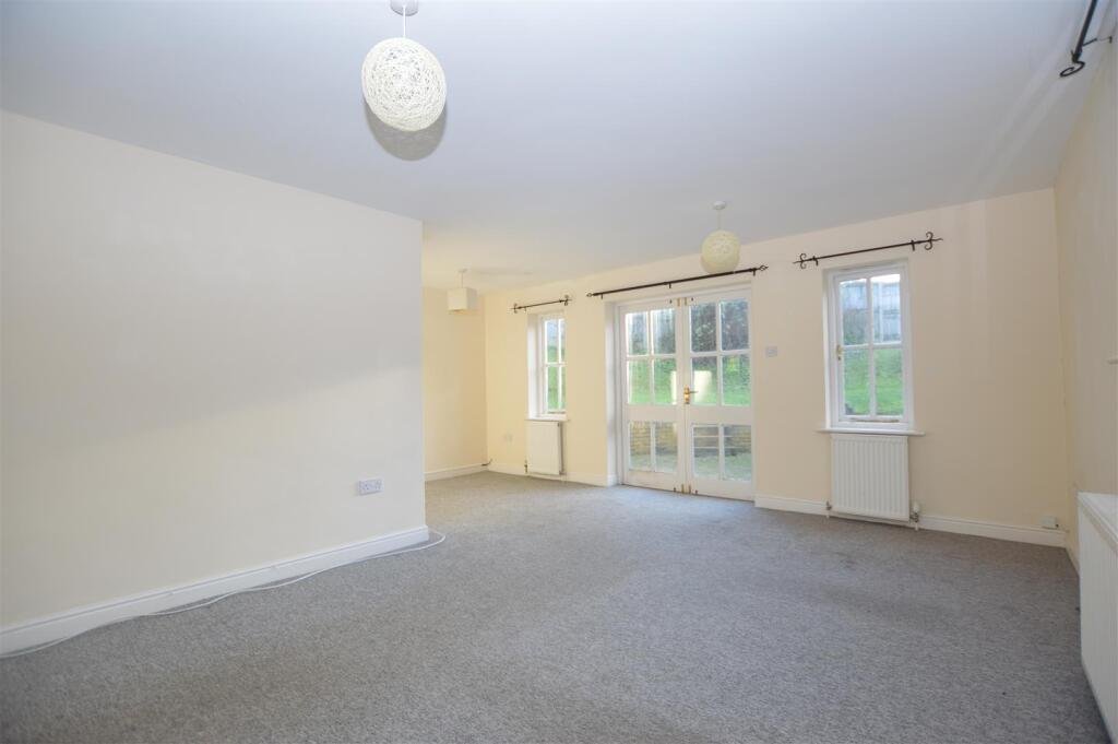The lounge being an `L` shape room with fitted carpet. windows to rear and side aspect and double french doors leading out to the rear garden.