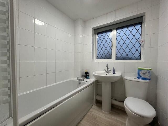 Bathroom: Family bathroom comprising of bath with electric shower over , wash basin, w.c., electric towel rail. Upvc window front to aspect.