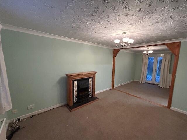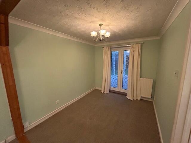 Lounge/Diner: 12’4″ x 23’8″ (3.76m x 7.21m), Window to front aspect, fitted carpet, 2 x radiator, French doors leading to conservatory, door to kitchen.