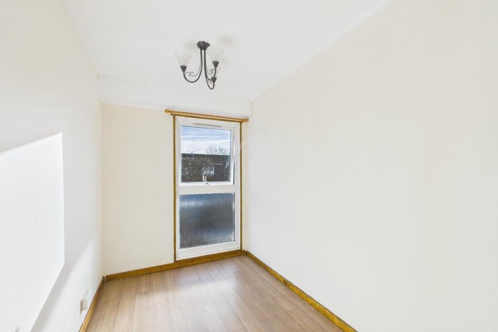 Bedroom Three – (‘L’ shaped room measured to either extreme, see floorplan). Laminate wood floor, radiator, full height double glazed window to rear.