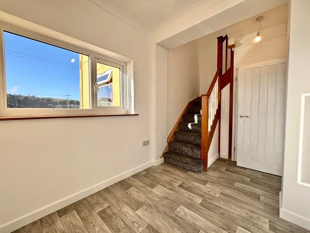 Entrance Hall Spacious hallways with front facing double glazed window, understairs storage, vinyl flooring, radiator, meters located in high wall cupboard. Â