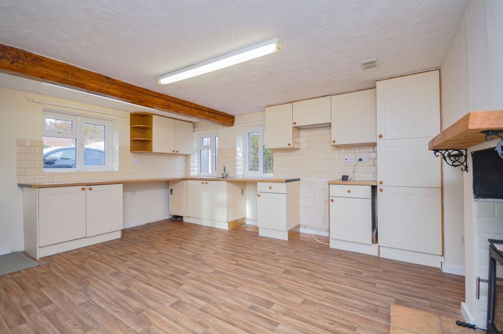 The modern fitted kitchen, complete with an abundance of cupboard and worktop space, is ideal for anyone looking to showcase their culinary skills. It offers designated areas for all standard white goods. Beyond the kitchen lies the dining room which, featuring an operational wood burner, provides a warm and inviting space for entertaining at any time of day. The reception space extends further into a cosy sitting room, perfect for relaxing during the upcoming winter months.