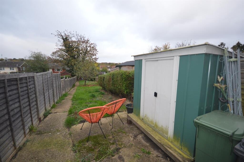 Extractor over. One and a half bowl stainless steel sink unit inset to work surface. Worktops with drawers and cupboards under. A range of eye level cabinets. Fridge/Freezer. Window and door to side. Extensive tiling. Down lighters. Glazed window to side. Low level flushing suite. Wash hand basin. Ceramic flooring. Bedroom 1 3.76m (12’4) x 3.05m (10′) Window to front. Carpet.Bedroom 2 3.18m (10’5) x 2.9m (9’6) Window to rear. Carpet.Bathroom Suite compromising panelled bath with telephone style shower and tap unit. Low level WC. Pedestal wash hand basin. Electric shower over bath. Down lighters. Large storage cupboard. Ceramic flooring.Garden The deep rear garden has a large patio area leading to a lawn area. Conifer hedge screen. Timber fencing to boundaries. Timber garden shed and modern shed for storage. Exit only right of way from rear.Parking Off road parking with drop curb to front. Disclaimer: These particulars do not nor constitute part of, an offer of contract. All descriptions, dimensions, reference to condition necessary permissions for use and occupation and other details contained herein are for general guidance only and prospective purchasers should not rely on them as statements or representation of fact and satisfy themselves as to their accuracy. Kings property employees or representatives do not have any authority to make or give any representation or warranty or enter into any contract in relation to the property.