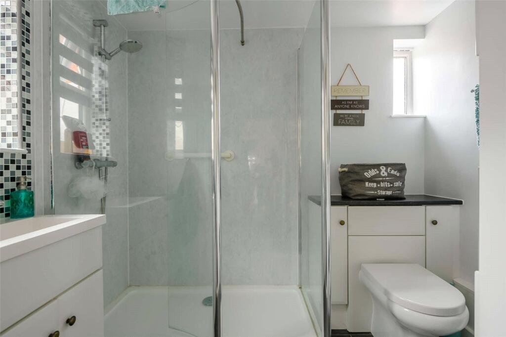 fitted kitchen with plenty of worktop and storage space, opening into a conservatory which provides a useful additional reception area and enjoys views over the rear garden. A ground floor shower room completes the layout.