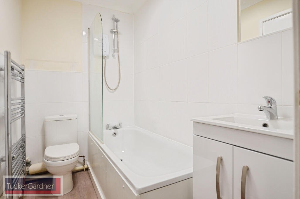 The accommodation comprises of a bright and airy sitting room with sliding patio door to the rear garden. The kitchen includes a range of wall and base units, gas hob, electric oven, fridge/freezer and washing machine.