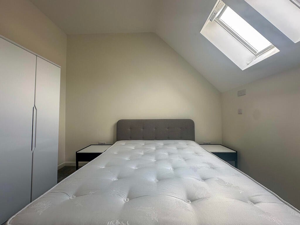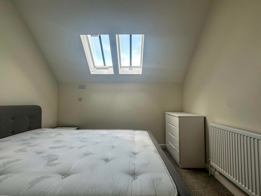 BEDROOM Good size double bedroom with grey carpet and velux windows. Double bed and mattress,