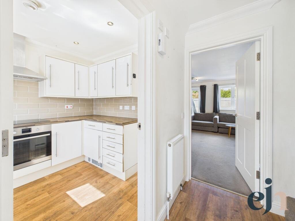 hallway sets the tone for the rest of the property. From here, doors open into the contemporary kitchen, a practical cloakroom, and the inviting lounge.