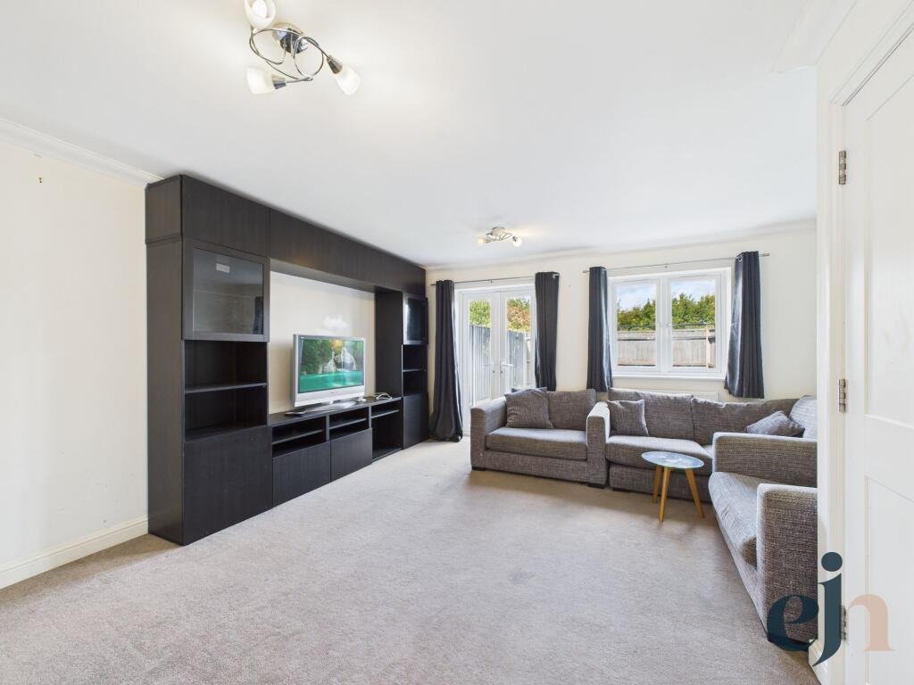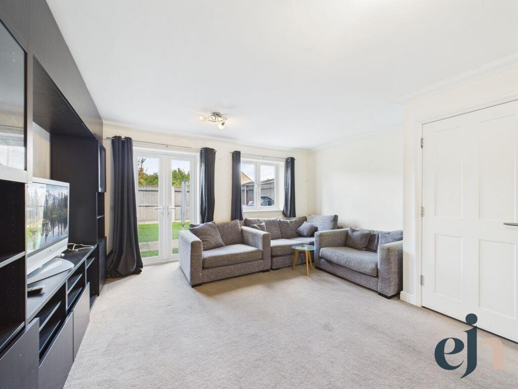 The lounge is a real highlight with bright, spacious, and finished with a bespoke fitted media wall unit, creating the ideal space for relaxing or hosting family and friends. French doors seamlessly extend the living space into the rear garden, flooding the room with natural light.