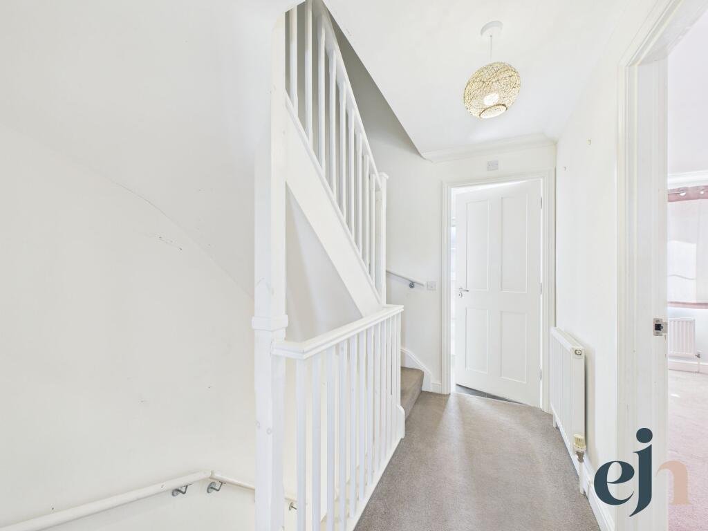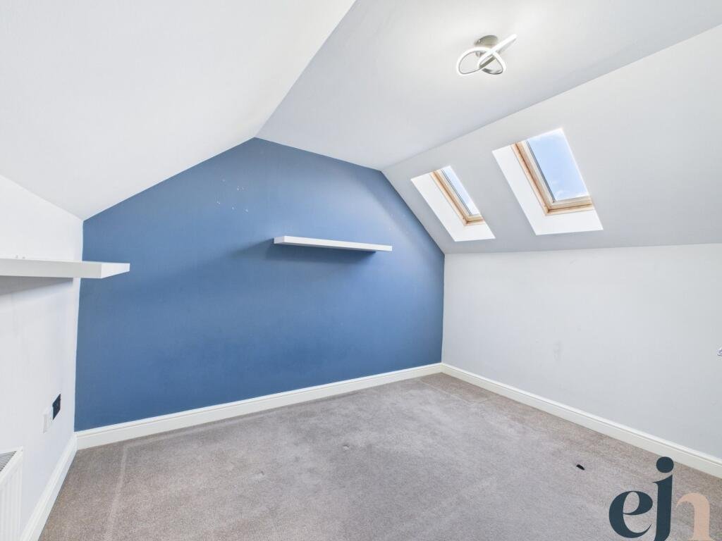 A further staircase leads to the top floor where the third bedroom is tucked away, boasting Velux windows, a handy eaves storage cupboard, and a private, cosy feel, ideal as a guest room, home office or teenager’s retreat.
