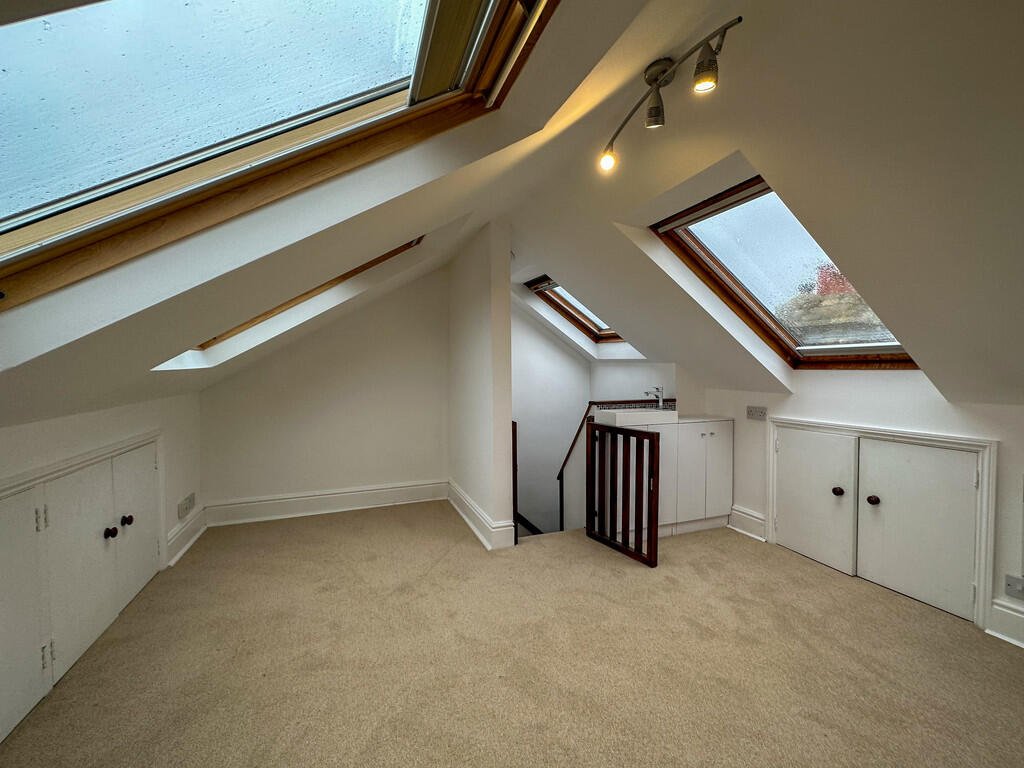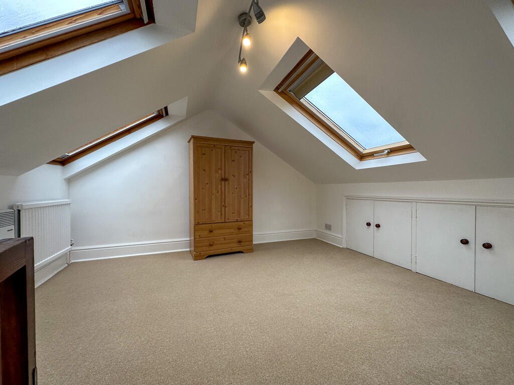 BEDROOM 4 To the second floor, a loft conversion with carpet, radiator, fitted sink, storage space to eaves cupboards, and sky light windows to both sides to appreciate light and rear field views.