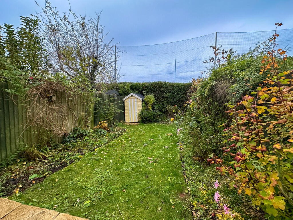 GARDENS Front garden with gate, feature tile walkway, small gravel section, and mature shrubs. Enclosed rear garden with patio directly next to the house and wrapping around the side of the property leading to the gate and alleyway. Lowered lawn area with mature shrubs and hedges, and a small shed at the end.