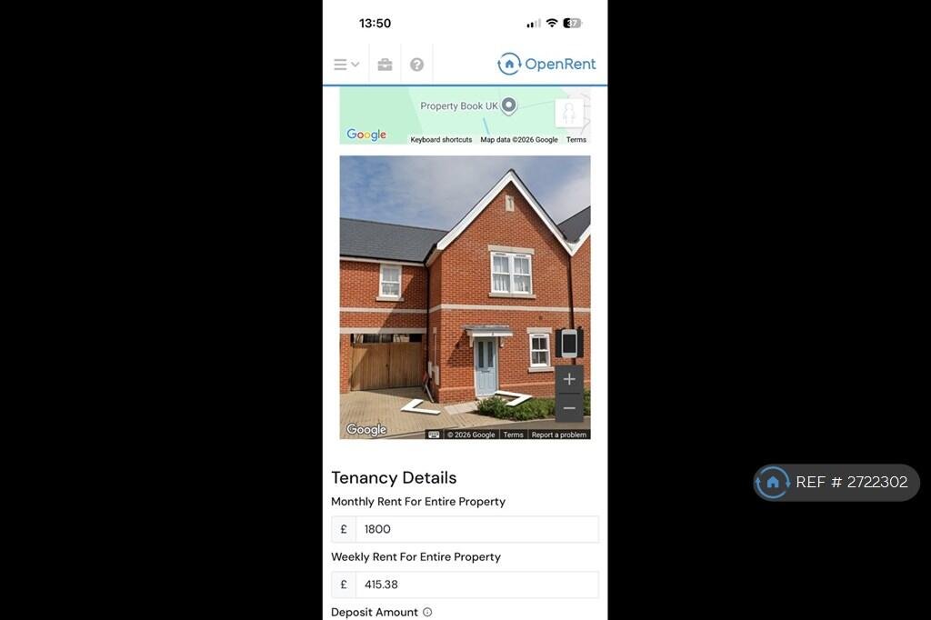 Rent £1,750.00 per month (£403.85 per week)Deposit / Bond is £2,019.23