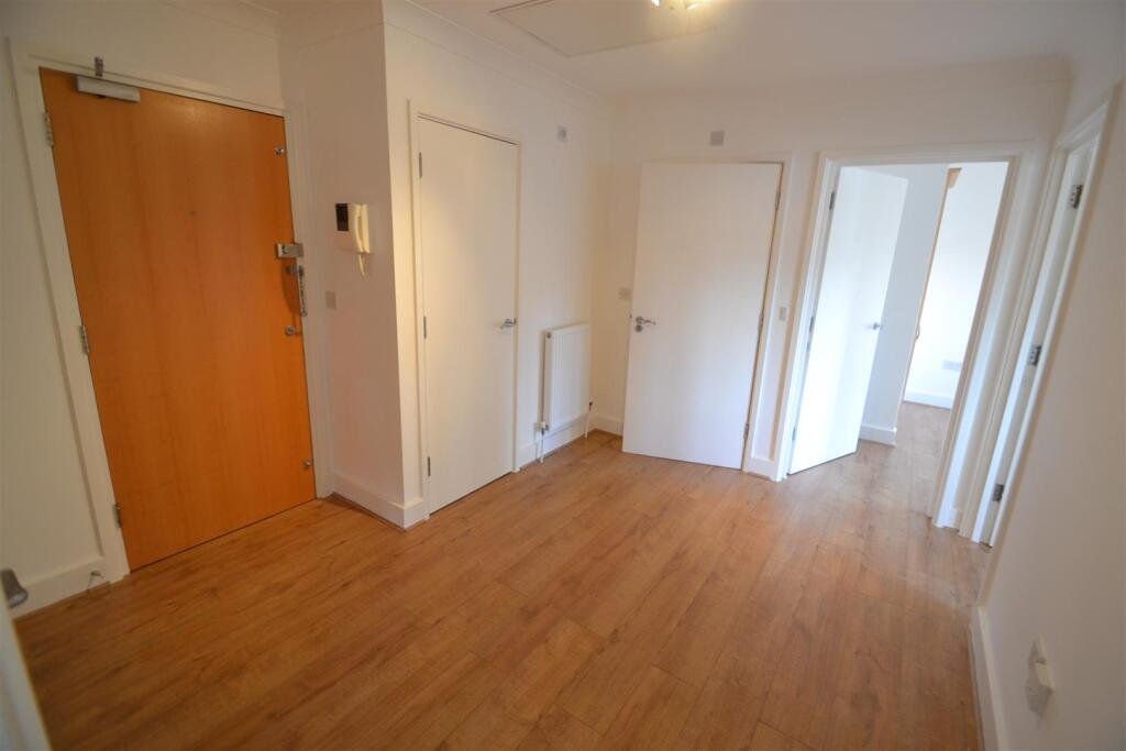 Entrance Hall – 3.335m x 2.421m ( 10’11” x 7’11”) – Wood laminate floor, entry phone, two built in cupboards, single electric socket, radiator, telephone socket and, boiler cupboard,
