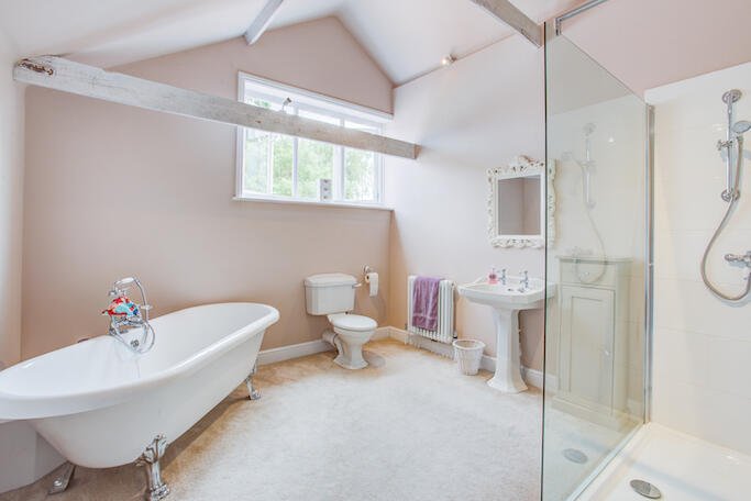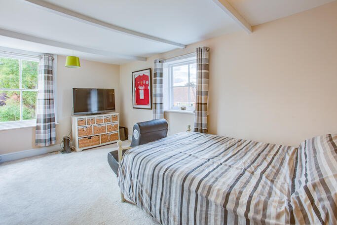 The main bedroom is of an exceptional size with exposed beams, en-suite bathroom and walk in wardrobe. The second bedroom is a double and has an en-suite shower room. There are 3 other double bedrooms all leading off the landing. There is also a family bathroom with shower and bath.