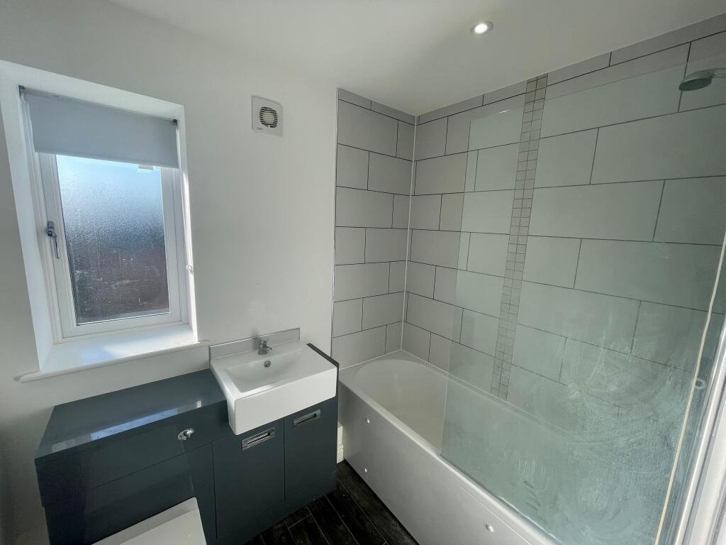 Upstairs are the three bedrooms, the large two have full length windows that allow in gallons of natural light. The bathroom is ultra modern