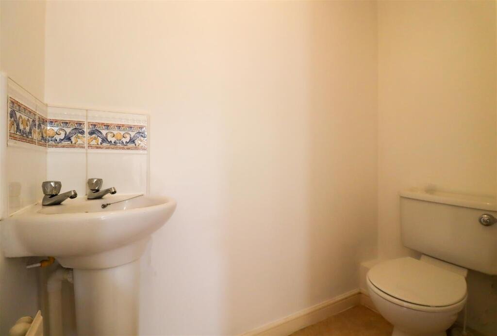 Cloakroom – with white suite comprising: corner pedestal wash hand basin and wc.