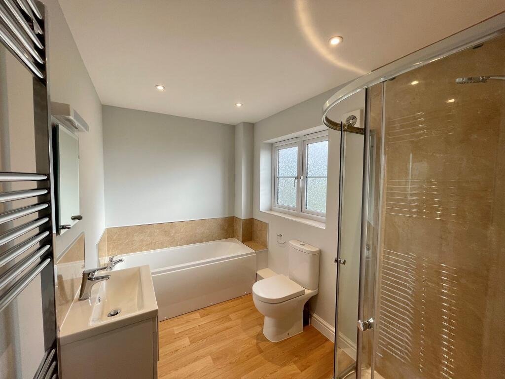 Upstairs you have four bedrooms, three of which are large double rooms, two of which are complete with an en-suite bathroom with shower cubicle. The stylish family bathroom is part tiled and has a bath and separate shower cubicle.