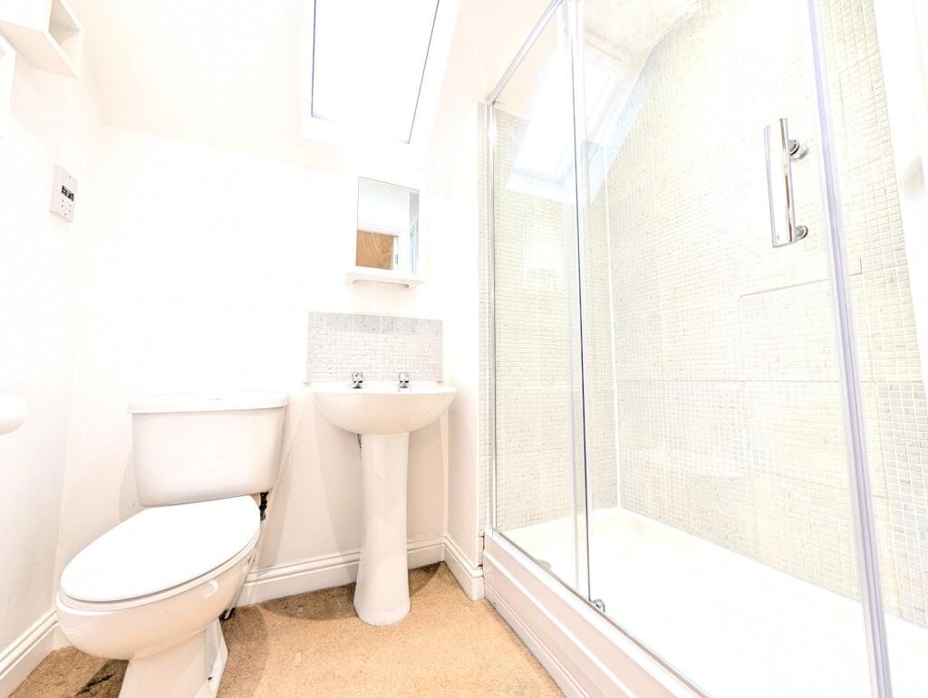 comprising of bath with shower over, low level w/c, wash hand basin.