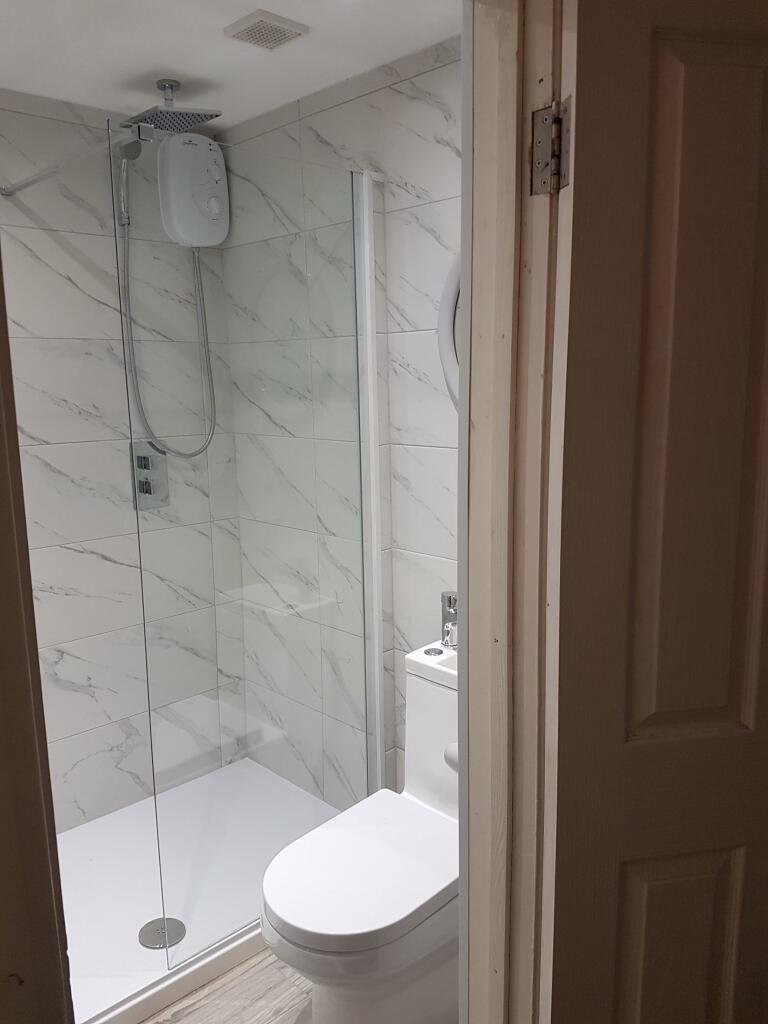 shower over bath. The kitchen comes fitted with plenty of storage and counter space, a large fridge freezer, washing machine, oven, hob, and microwave. The first floor offers three double bedrooms and another bathroom, with a walk in shower. There is a further double bedroom located in the attic. The property has a rear garden with bike shed, and parking is available with a permit on street.