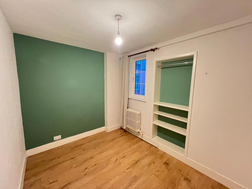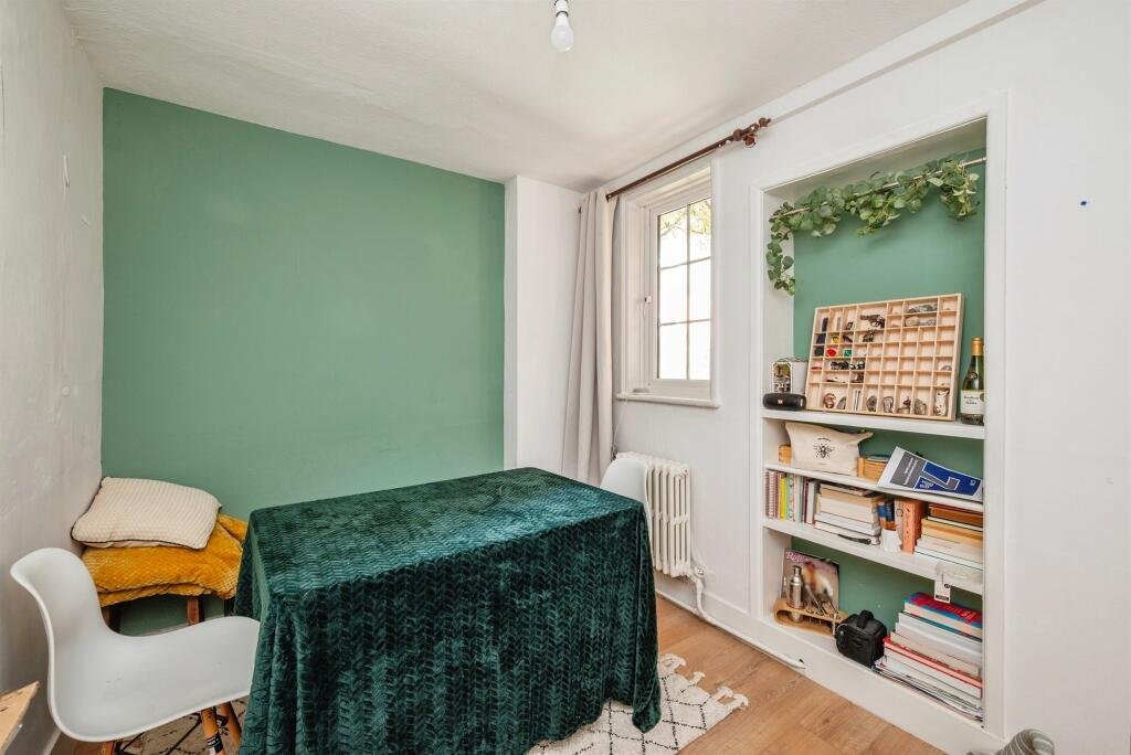 Bedroom One 11′ 3″ x 13′ 4″ max ( 3.43m x 4.06m max )Double glazed window to rear aspect, laminate flooring, column radiators, solid wood door to side aspect leading to communal gardens.