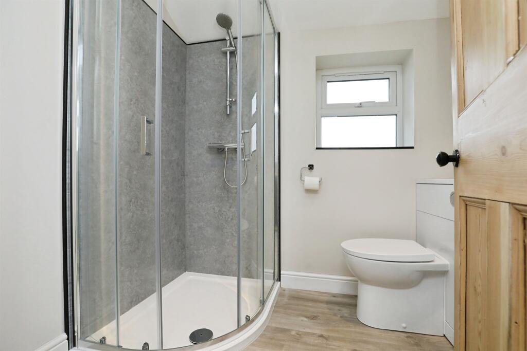 Bathroom Double glazed window to rear aspect, laminate flooring, wc, wash hand basin, shower, heated towel rail.
