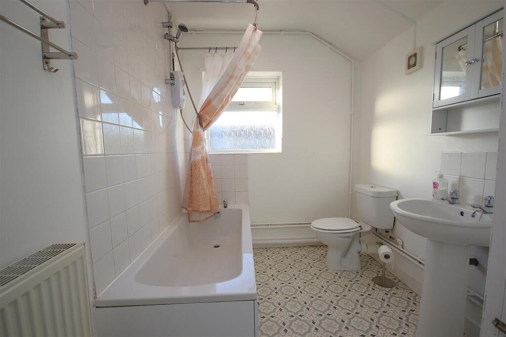 Bathroom – Rear first floor bathroom with electric shower over bath, WC and hand basin