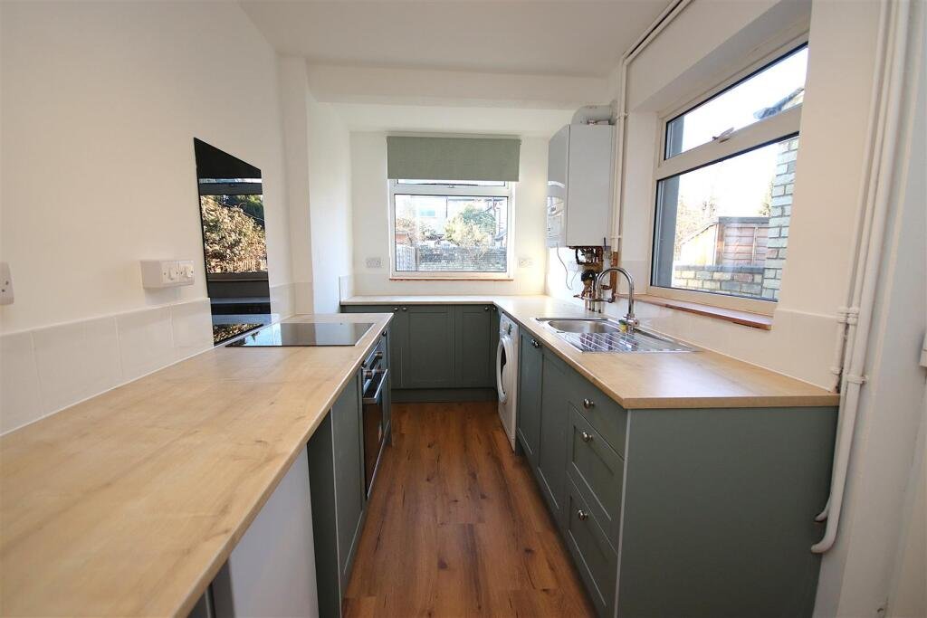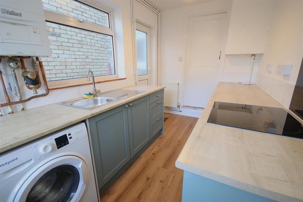 Kitchen – 4.20 x 2.01 (13’9″ x 6’7″) – Newly installed rear kitchen with back door leading to gardenKitchen is equipped with electric hob and oven, under counter fridge and washing machine