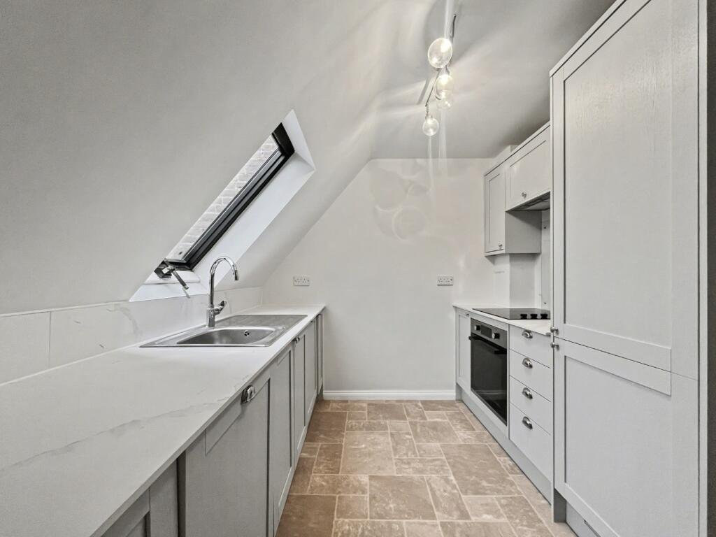 Kitchen: 9`x 8` Refitted modern kitchen. Window to front, skylight to the rear, integrated washing machine, fridge/freezer and dishwasher. Fan oven with ceramic hob.