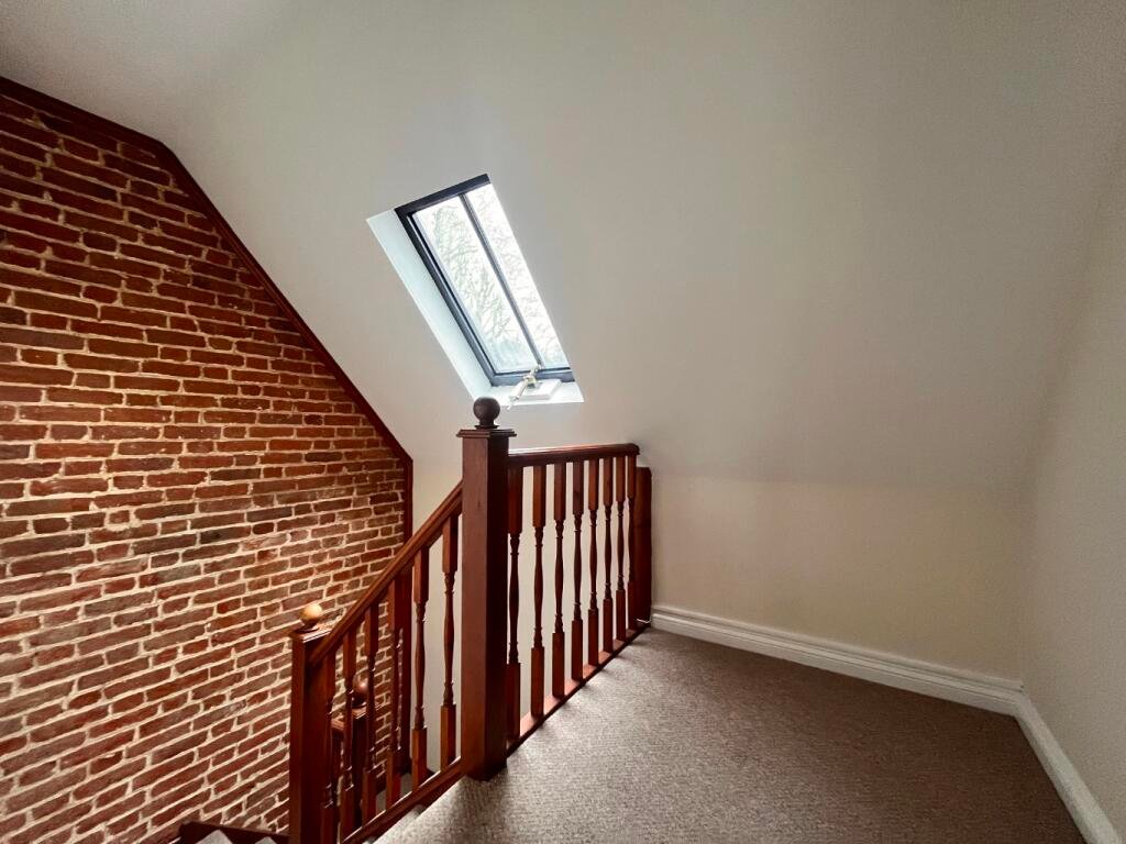 Entrance Hallway: 13` 5″ x 7` Stairs to first floor landing with exposed brick work to stairwell, under stairs storage cupboard, doors to bedrooms and bathroom.