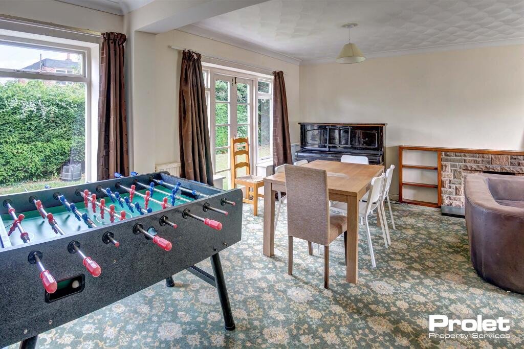 The L shaped living and dining room offers open living and comes with a table and chairs, sofas, shelving units, and french doors leading to the garden. There are four large double bedrooms, one downstairs with an ensuite, three upstairs bedrooms all off landing and an upstairs bathroom with shower over the bath.