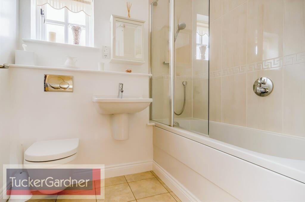 Bedroom two 11’8 x 8’11 includes a sofa bed, desk, book shelf and built in wardrobe. Modern family bathroom with shower over bath.