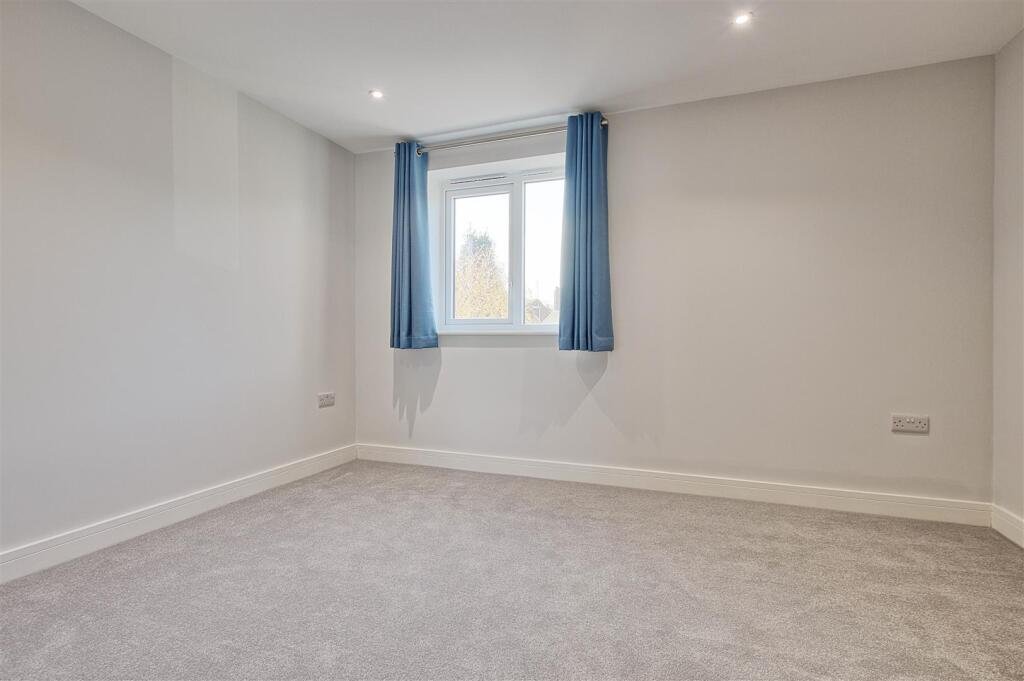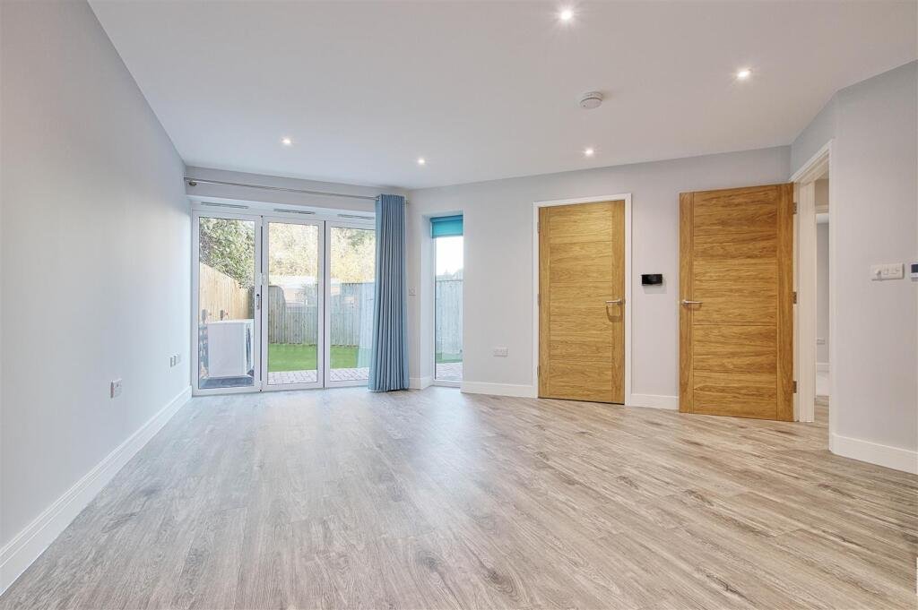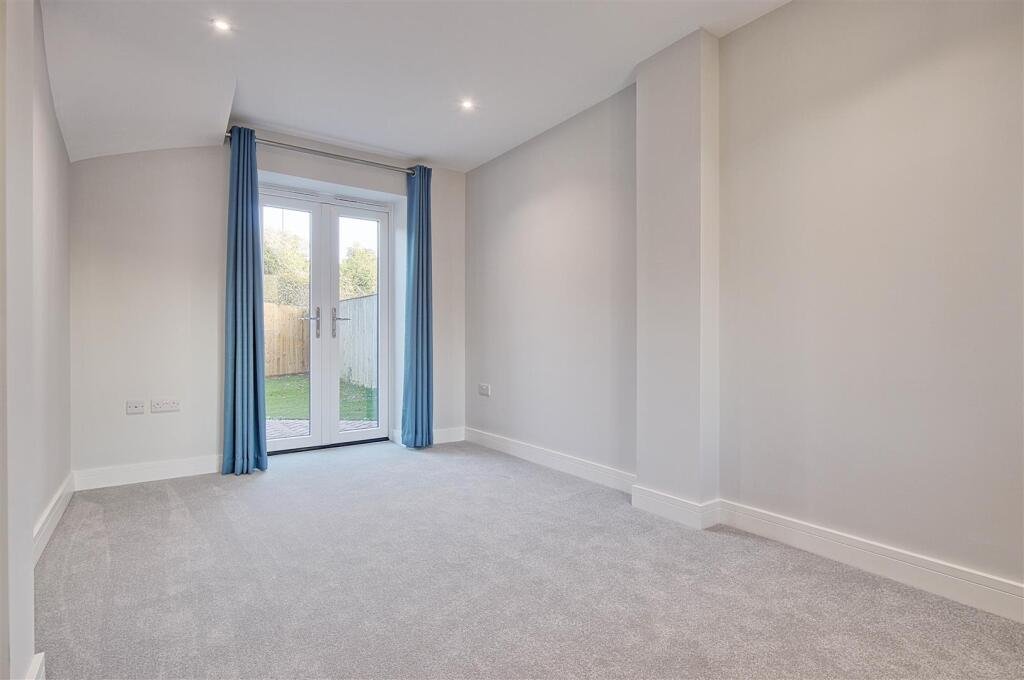 To the right of the ground floor is Bedroom 2, a generous double bedroom with plush new carpeting and a calming neutral décor. Double French doors open directly onto the private rear garden, allowing natural light to spill into the room and offering a wonderful indoor–outdoor feel.