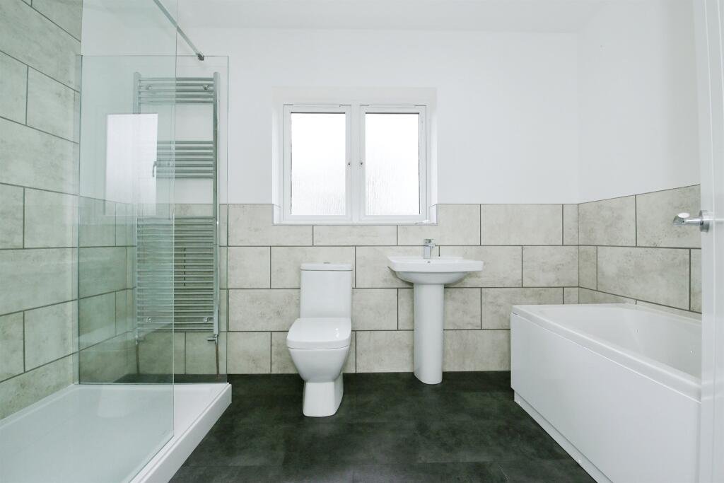 Family BathroomFitted with a four piece suite comprising bath, shower cubicle, wash hand basin and WC, window to rear, heated towel rail.