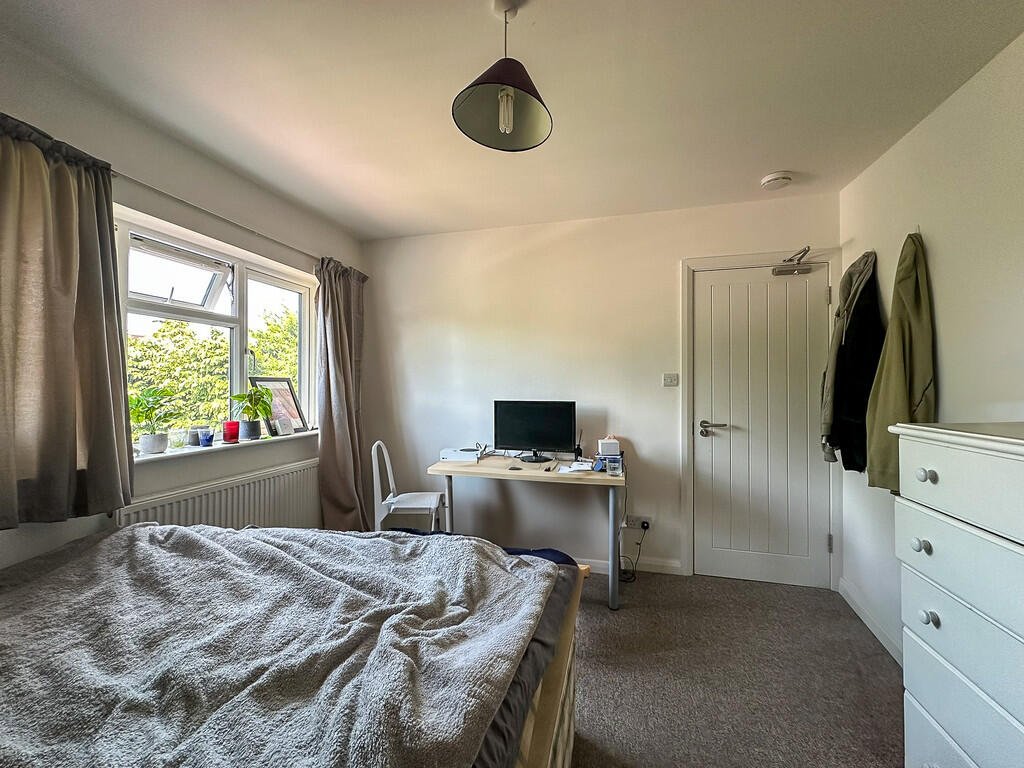 BEDROOM THREE A bright room double room on the first floor, furnished with curtains, a double bed, wardrobe, chest of drawers, desk and chair. Large window to the rear over looking the garden.