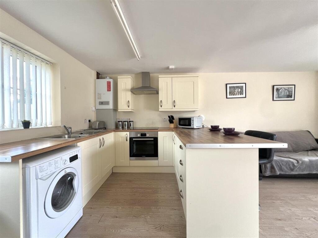 The accommodation comprises a welcoming open place kitchen and living area with furnishings and white goods included. A well-equipped fitted kitchen, and a spacious double bedroom complete with bedroom furniture. A contemporary bathroom completes the internal layout.