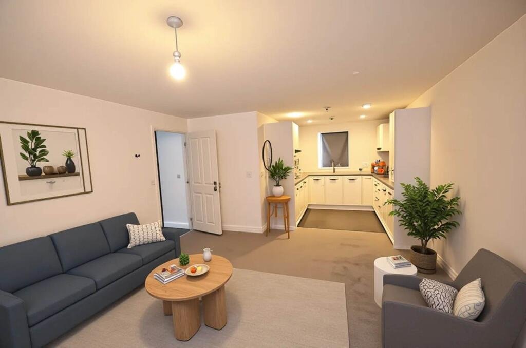The flat offers spacious and bright reception room, which boasts plenty of natural light thanks to large windows. The room a neutral colour scheme, making it a versatile space for any set-up. There`s plenty of room for a large sofa, armchairs, and an entertainment unit perfect for movie nights, entertaining guests, or