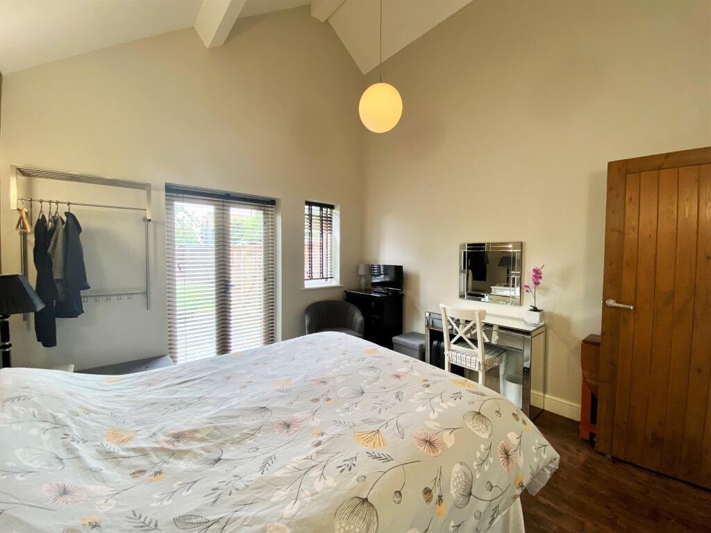 The interior is completed by a generously sized double bedroom, featuring double doors that open directly onto the private rear garden.