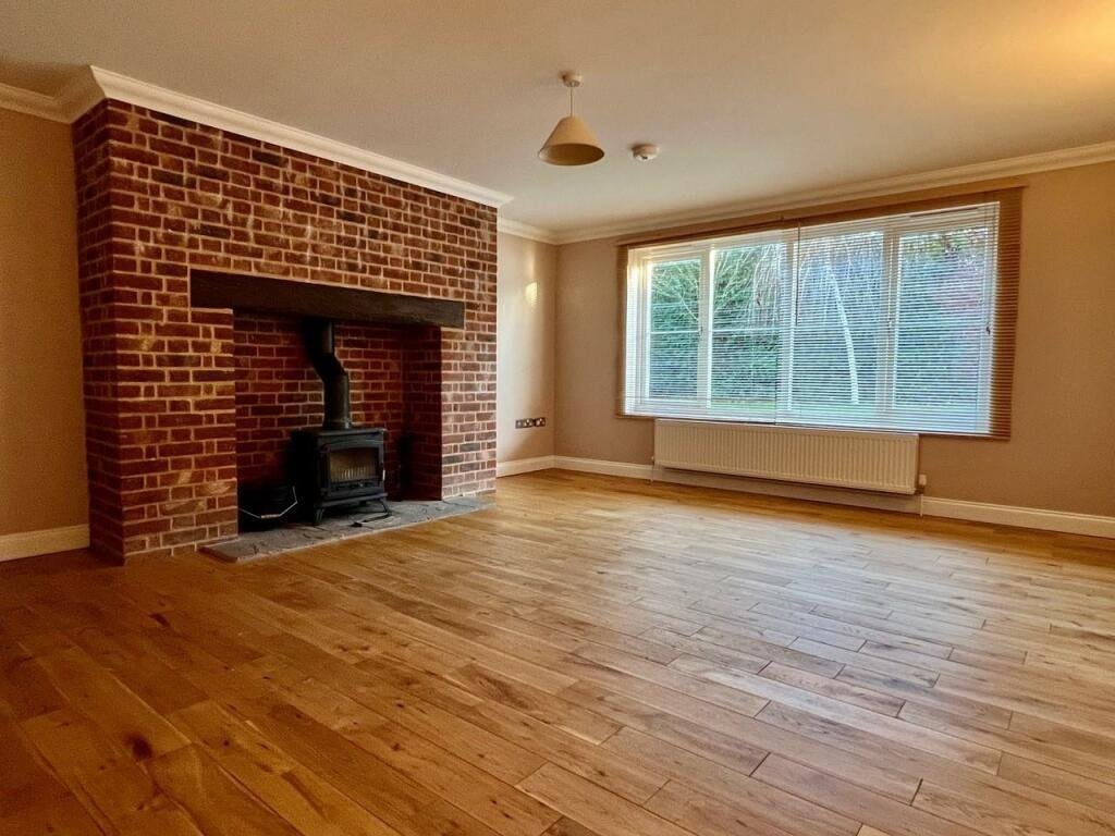Lovely Sitting Room: 5.21m x 4.32m (17′ x 14’1″) with large brick fireplace with wood burning stove, wooden flooring.