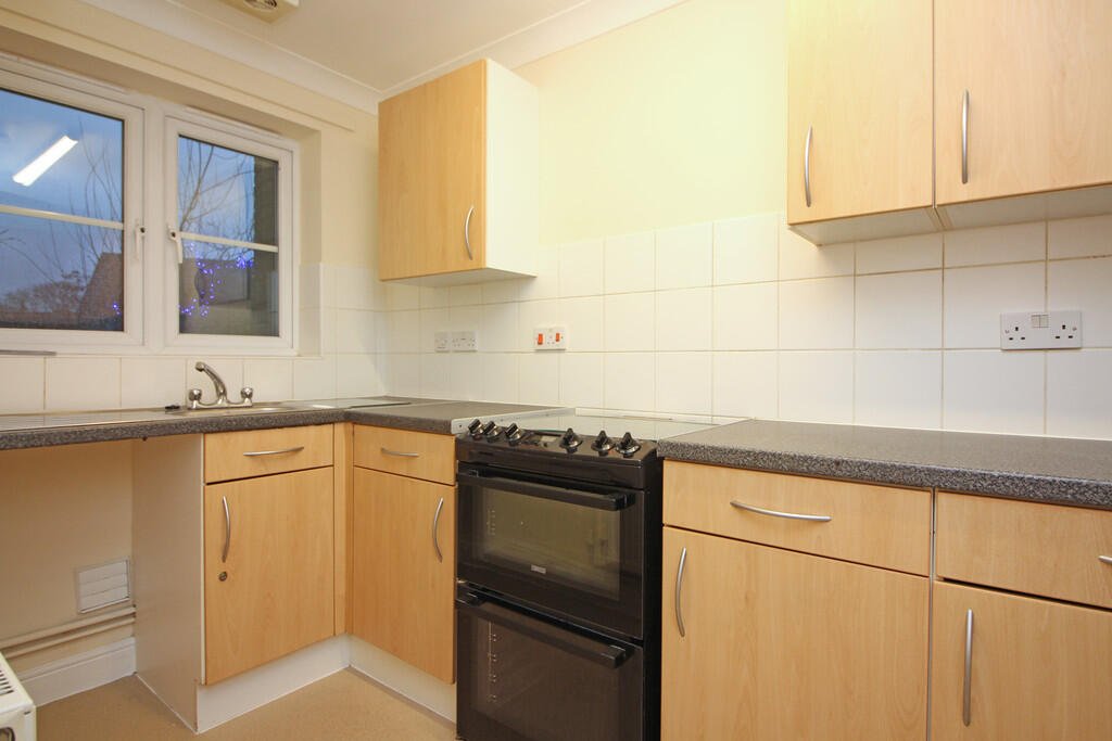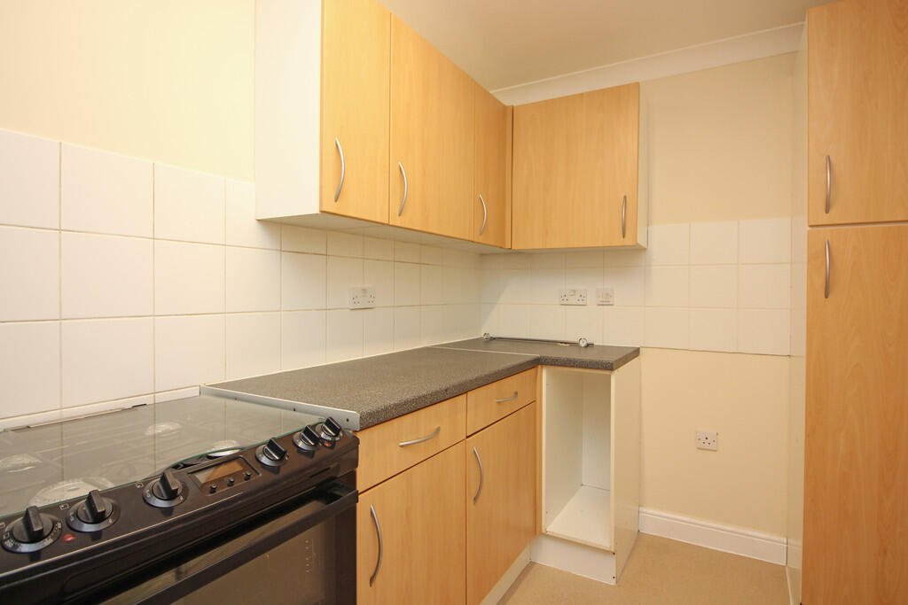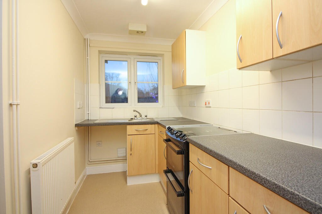 KITCHEN 11’5 x 5’7 min, 6’8 max (3.5m x 1.7m min, 2.03m max). Fitted base units, matching wall cupboards and tall larder unit, inset single drainer stainless steel sink unit, vinyl floor covering, plumbing for automatic washing machine, cooker, radiator, uPvc sealed unit double glazed window to front, extractor fan, coved ceiling.