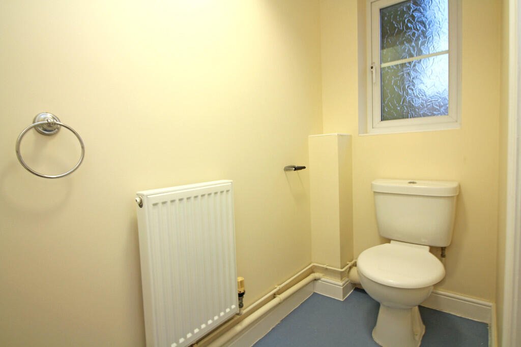 CLOAKROOM White close coupled WC, hand basin with tiled splash backs, vinyl floor covering, radiator, uPvc sealed unit double glazed window to front, extractor fan, coved ceiling.
