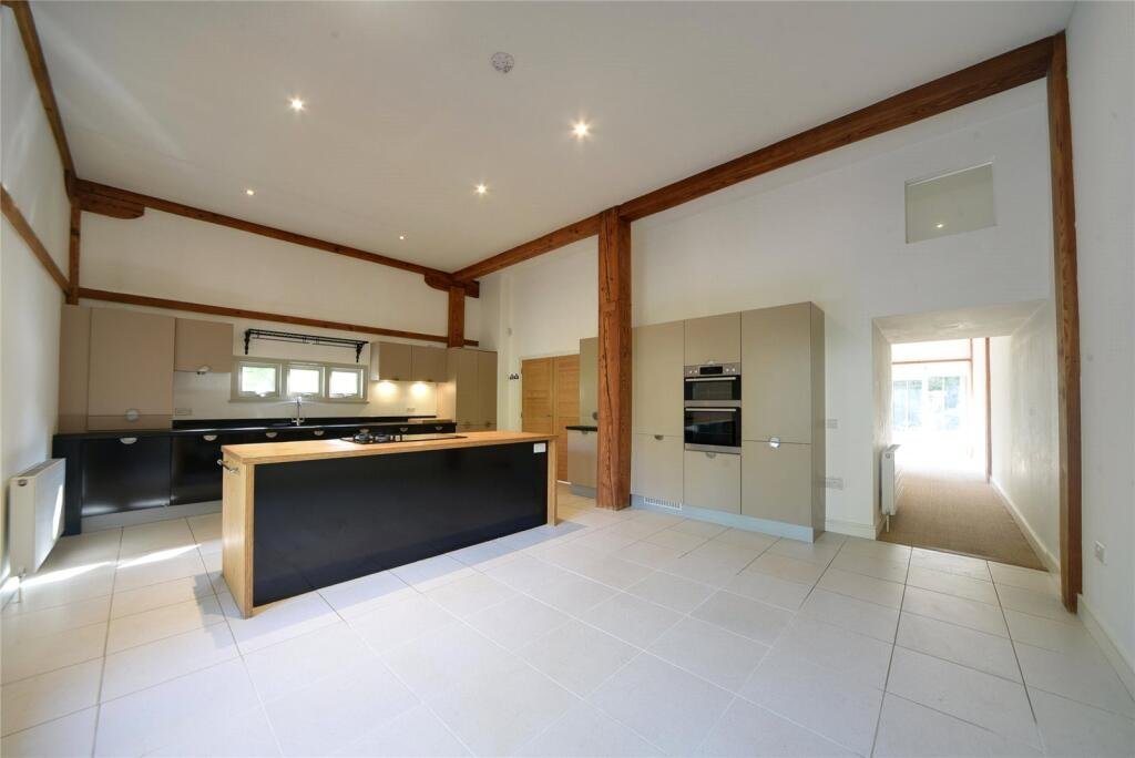 KITCHEN/DINER:Range of fitted units and island, built in double oven with hob, microwave, washing machine, wine cooler and dishwasher. Patio doors to side and exposed wooden beams.