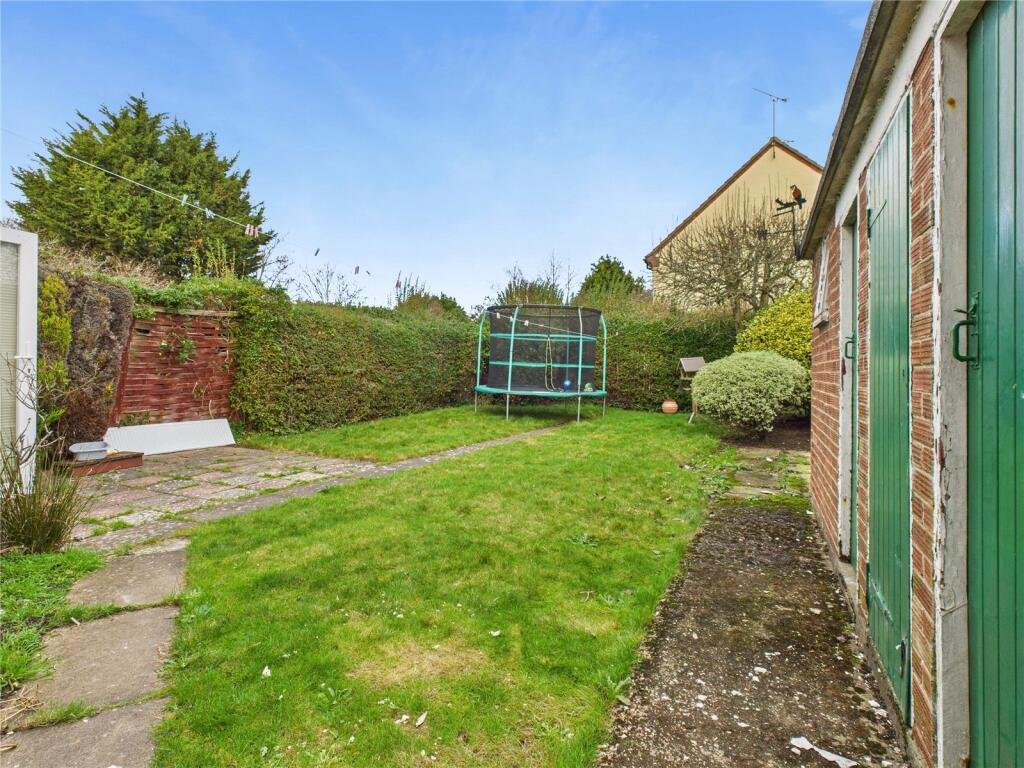 To the rear is an enclosed rear garden with outbuildings, side access to the garage and a gate to the frontage. The front garden is mainly laid to lawn and there is a driveway and single garage.