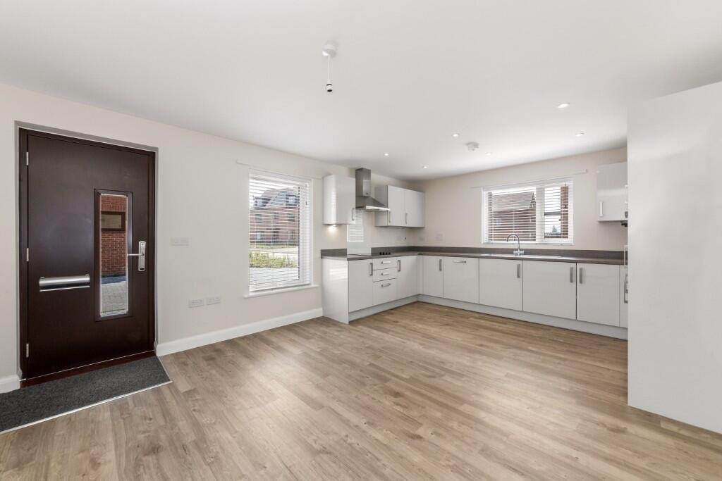 This house type is called The Marshall. This is a modern two-bedroom, new build house, set over two levels with a private terrace, parking, and storage. The ground floor leads to a bright and airy kitchen diner with integrated appliances, along with a WC and a storage room.