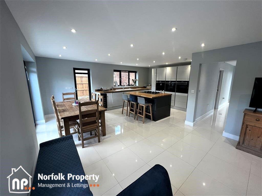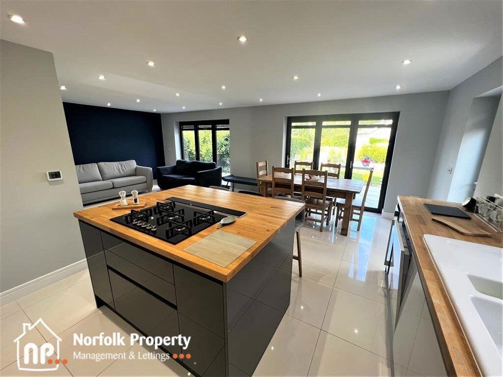 Set in this quiet cul-de-sac position in Cringleford is this impressive Detached Family home. The present owners have renovated to a very high standard incorporating high tech facilities. The kitchen family room is stunning with views over the rear garden accessed by the double bifold doors, a smaller snug, Utility room, and wet room downstairs. On the first floor are four double bedrooms, two with en-suit facilities and a large family bathroom with walk in shower. Full gas heating, Full double glazing, single garage, and enclosed rear garden. The property is available on a 12-month tenancy and is Council Tax