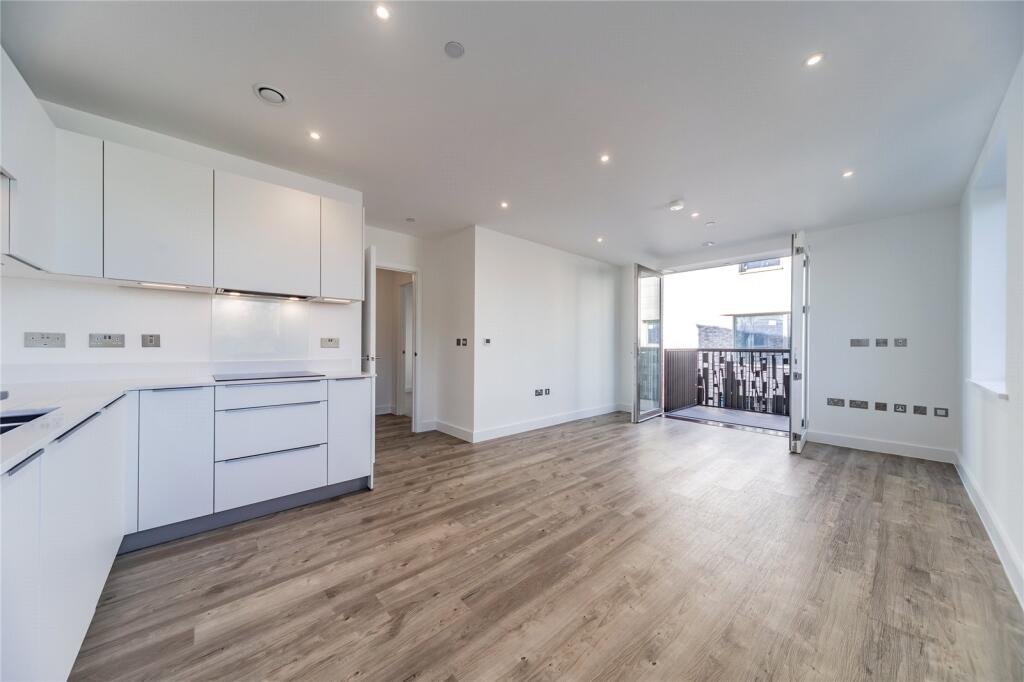 and stylish open plan kitchen/sitting/dining room, bedroom and a bathroom. The spacious open plan kitchen/sitting/dining room comes with Amtico flooring, and the kitchen comprises wall and base units with soft close to doors and drawers, and integrated appliances including oven, hob, stainless steel sink, dishwasher, and fridge freezer. There is also a washer/dryer in the hallway cupboard. The property further benefits from a bedroom with fitted carpet and built in wardrobe, and bathroom with tiled flooring and partially tiled walls, bath with shower above and a glass shower screen, sink, heated towel rail and W.C. In addition to this, there is a balcony and one unallocated parking space.