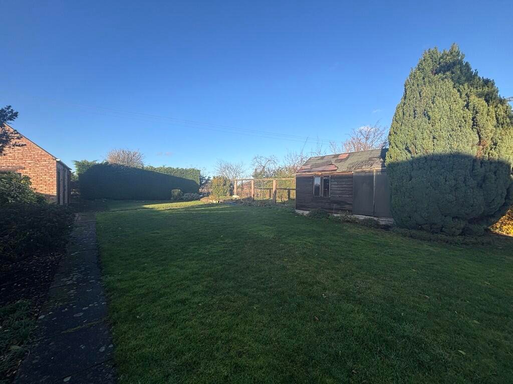 GARDEN Large garden laid to lawn with shrubs, boarders and trees. Large patio area with workshop and two other outbuildings.