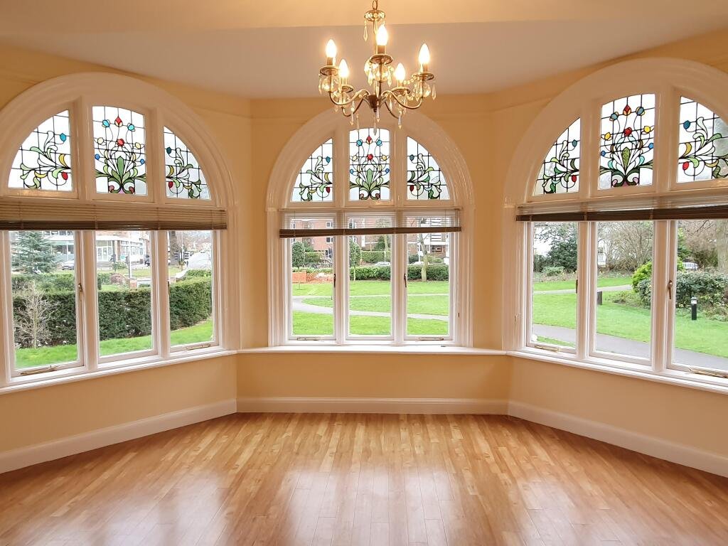 Living AreaT.V + Telephone + Satellite points, 3 large sash windows with character decorative stain glass tops making up the bay to the front aspect & 2 windows to the side aspect, 2 feature pillars and hard vinyl flooring.