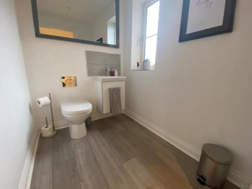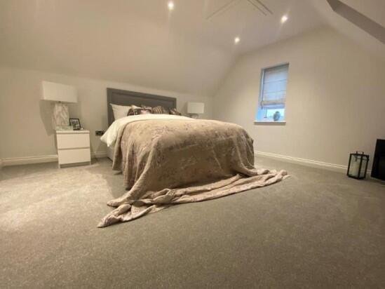 induction hob and extractor fan, all set within beautiful and indestructible work surfaces. The utility houses a full height freezer, space for a washing machine and tumble dryer. A spacious living room with bi-fold door that lead out onto the patio of the rear garden. Carpeted stairs lead to the first floor landing, leading to four bedrooms all benefitting from built in wardrobe space and one with an en suite and the master bathroom, the second set of stairs then lead to another two bedrooms, the master benefitting from an en suite. The rear garden is fully enclosed and benefits from a large patio perfect for entertaining guests.