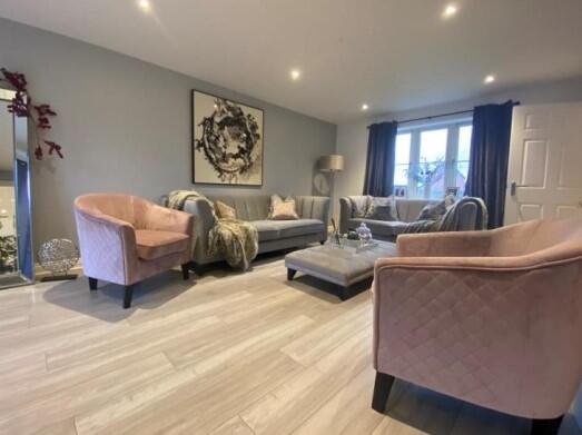 This modern home offers a generous entrance hallway, spacious cloakroom, open plan kitchen/diner with all appliances built in, including a full fridge, dishwasher, double oven and warming drawer, induction hob and extractor fan, all set within beautiful and indestructible work surfaces. The utility houses a full height freezer, space for a washing machine and tumble dryer. A spacious living room with bi-fold door that lead out onto the patio of the rear garden. Carpeted stairs lead to the first floor landing, leading to four bedrooms all benefitting from built in wardrobe space and one with an en suite and the master bathroom, the second set of stairs then lead to another two bedrooms, the master benefitting from an en suite. The rear garden is fully enclosed and benefits from a large patio perfect for entertaining guests.